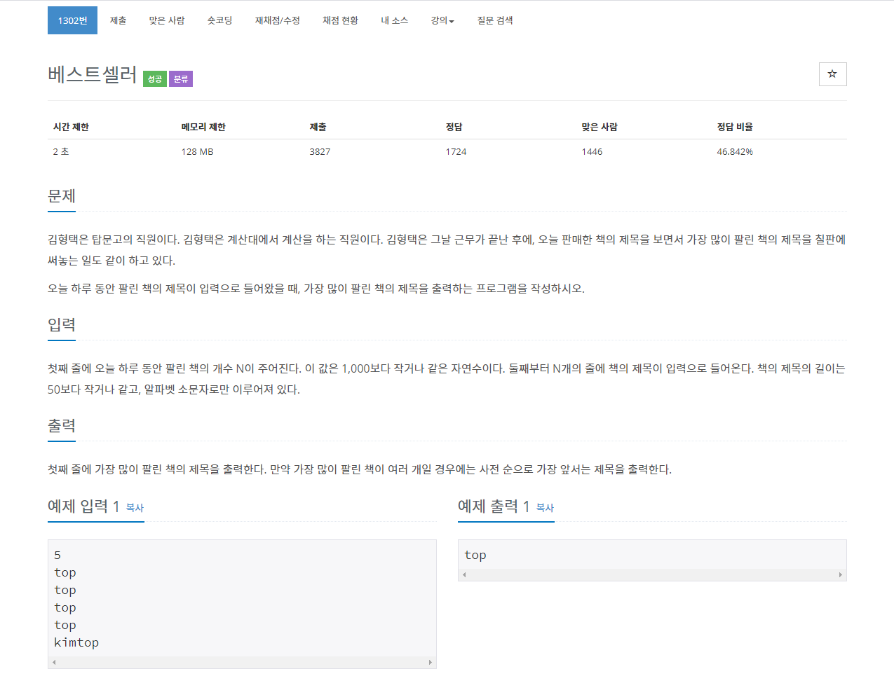 1302번: 베스트셀러
