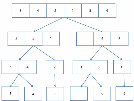 - 간단히 설명하자면, 큰 데이터를 하나의 작은 데이터로 쪼갠 후 정렬하면서 다시 합치는 것이다.