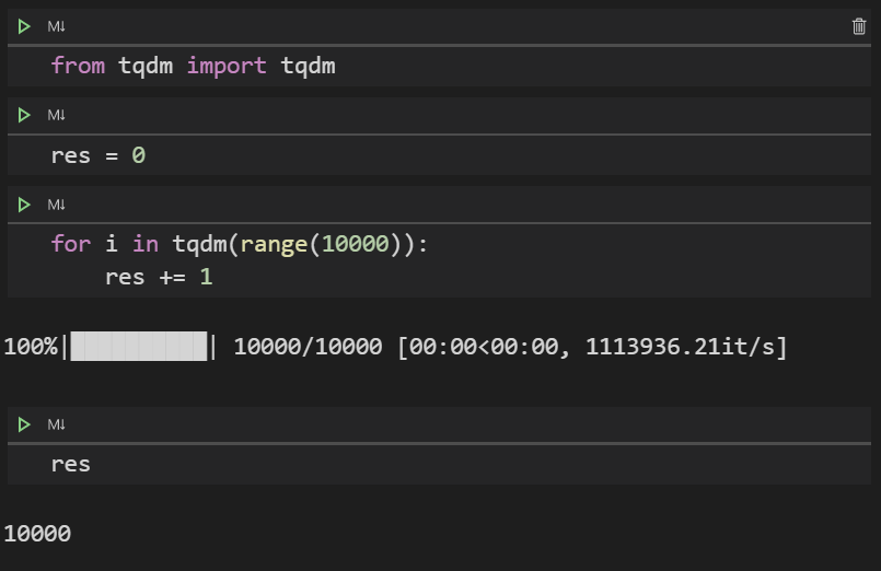 tqdm - 범위가 매우 큰 경우 1% 부터 천천히 올라가는 모습을 확인 할 수 있다.(너무 작으면 금방 100%가 되버림)
