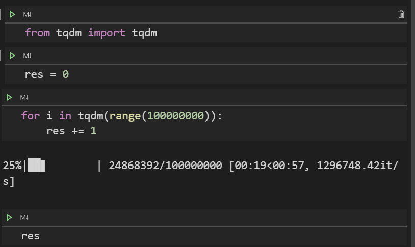 tqdm - 범위가 매우 큰 경우 1% 부터 천천히 올라가는 모습을 확인 할 수 있다.(너무 작으면 금방 100%가 되버림)