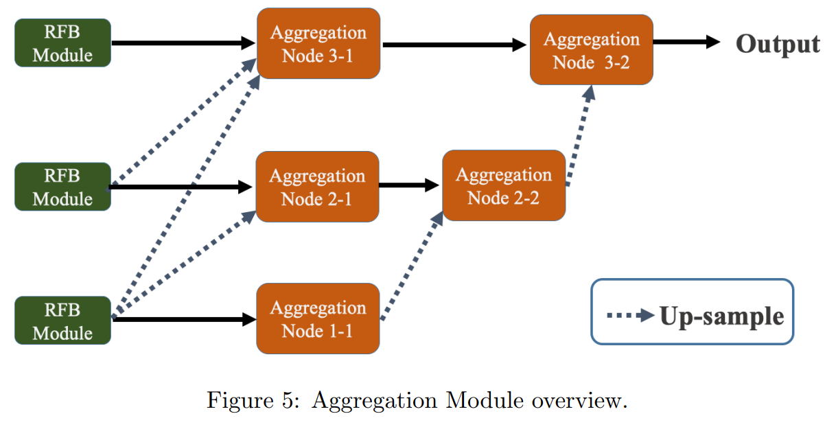 그림 5에 표시된 element-wise multiplication으로 aggregation을 수행한다. 동일한 scale로 up-sampling 후, feature는 해당하는 scale의 input feature와 곱해진다.