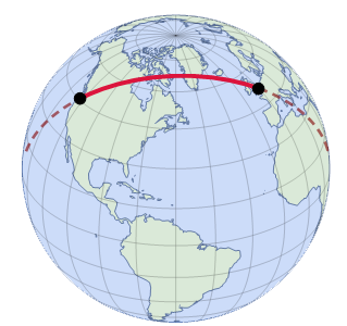 즉, 둥근 지구에서는 두 점이 호 모양이므로 평면처럼 거리를 계산하면 안된다