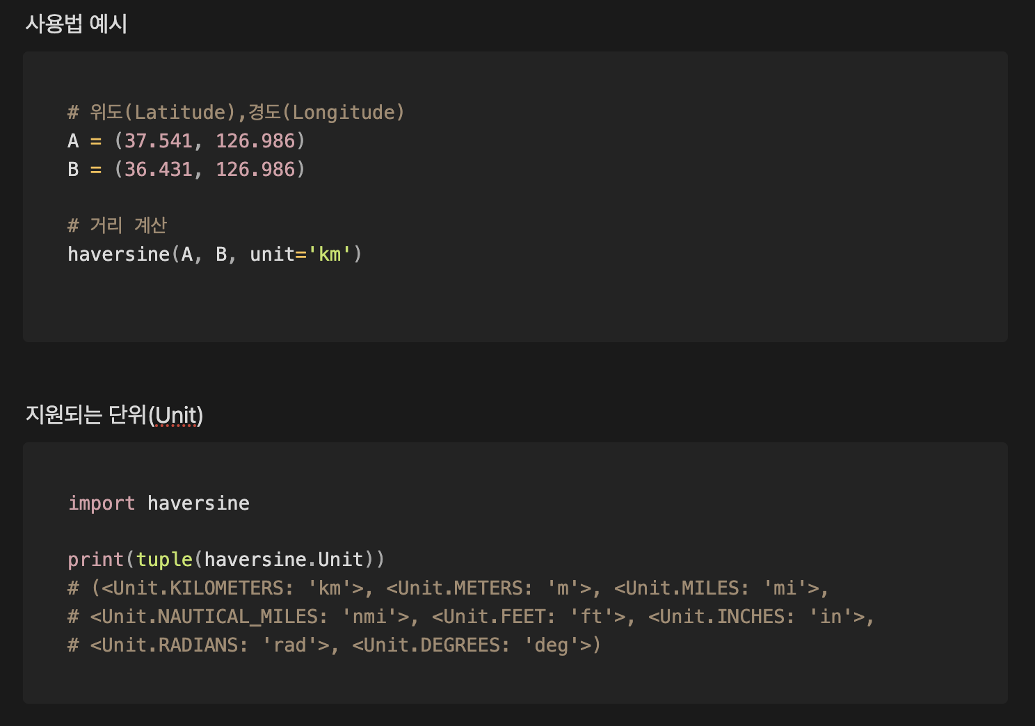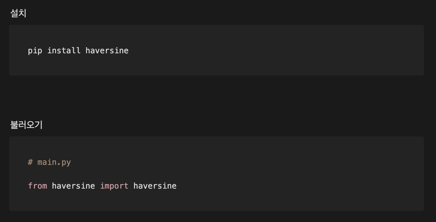 참고: https://github.com/mapado/haversine