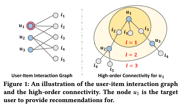 - High order connectivity는 경로 길이가 1보다 큰 노드에서 u1에 도달하는 경로를 의미한다.