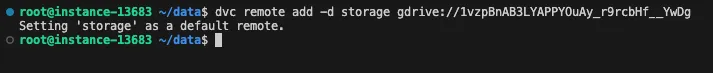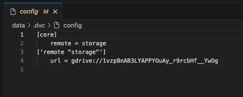 dvc remote add -d storage gdrive://1vzpBnAB3LYAPPYOuAy_r9rcbHf__YwDg