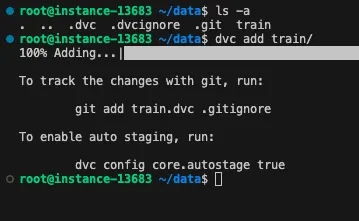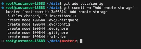 저장소의 변경 사항은 .dvc/config 에 적용되므로 git commit 명령을 통해 변경 사항을 최신화