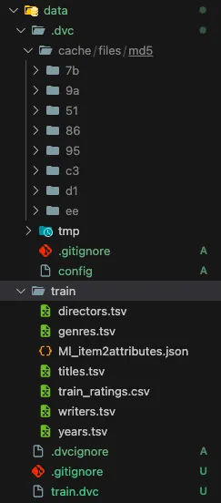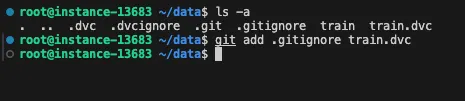 - git에는 개발자의 소스와 data의 메타데이터를 가지고 있는 dvc 파일만 저장