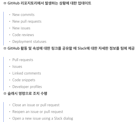 아래와 같은 기능을 사용하고 싶어서 깃허브와 슬랙 연동을 하였다